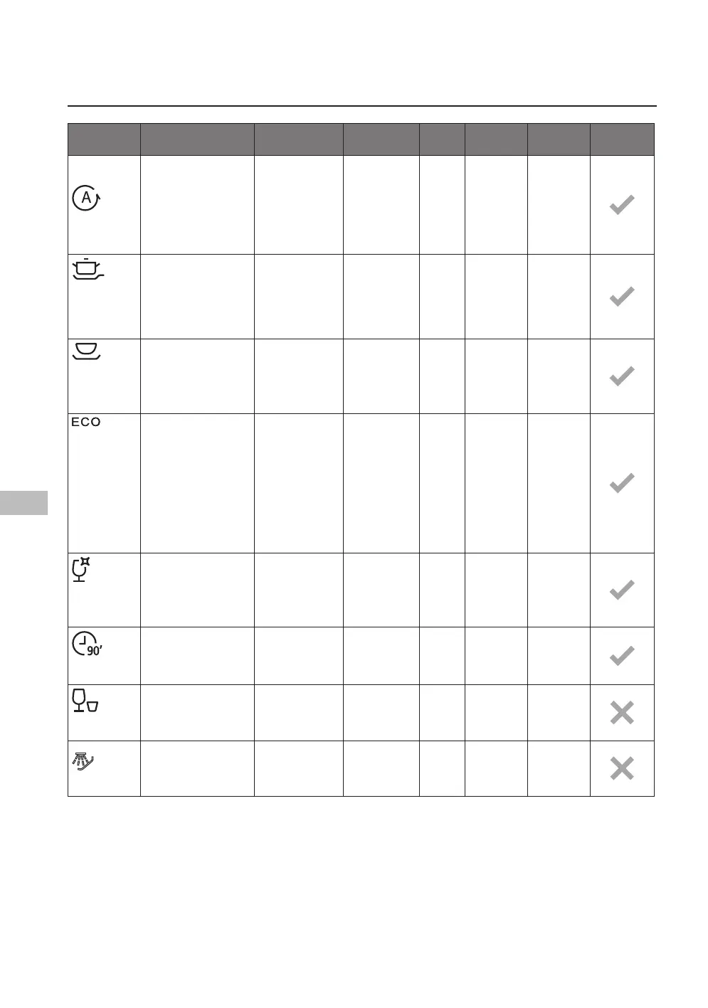 Skema over vaskecyklus (For at overholde EN