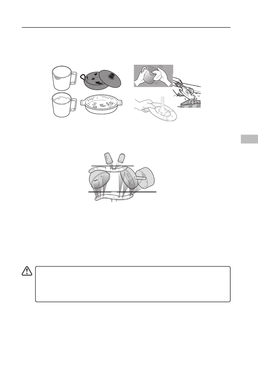 • Ikke vask gjenstander som er tilsmusset med aske, sand, voks, smørefett eller maling i