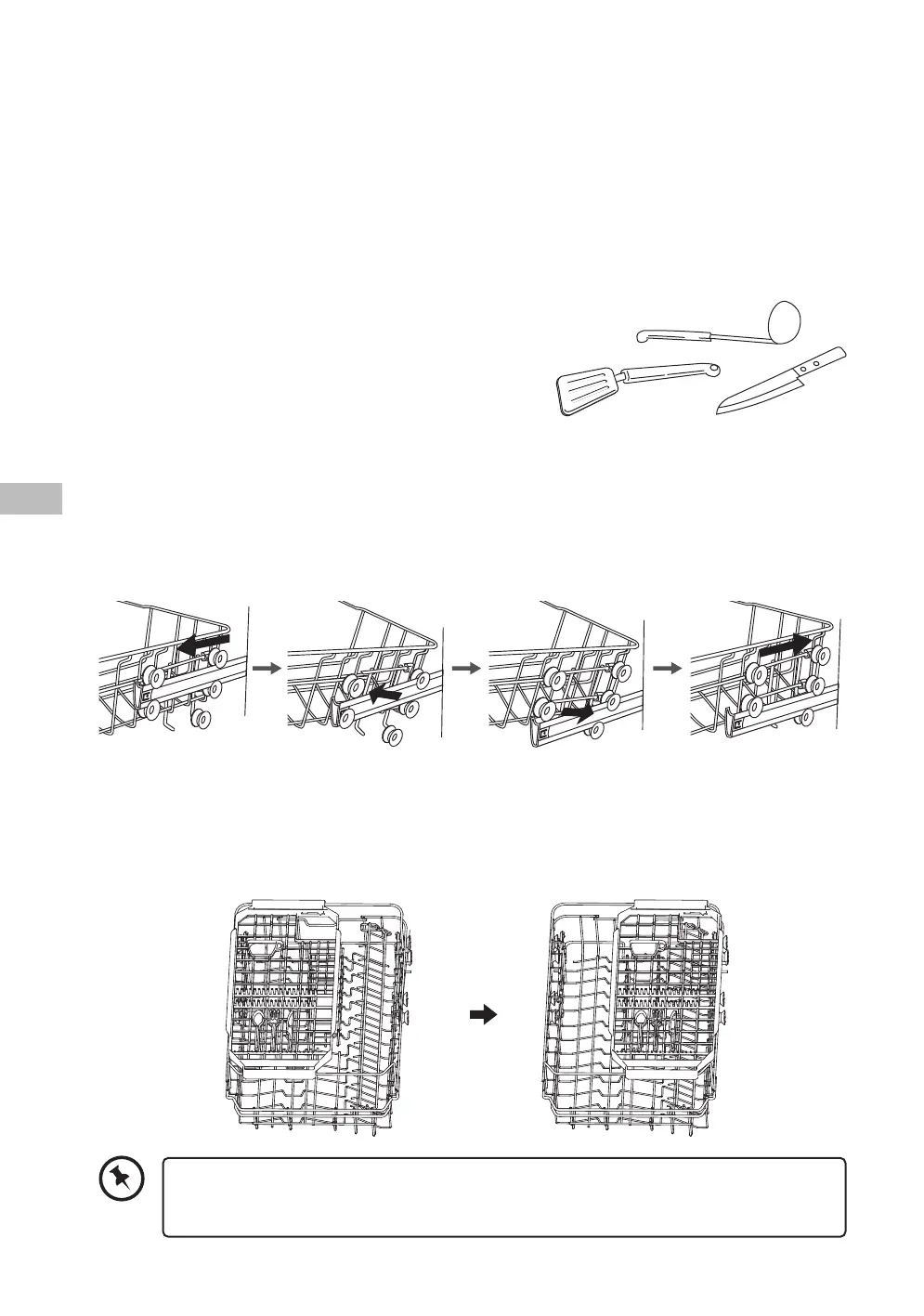 Du kan lage mer plass for større gjenstander i de øvre og nedre kurvene ved å justere høyden på
