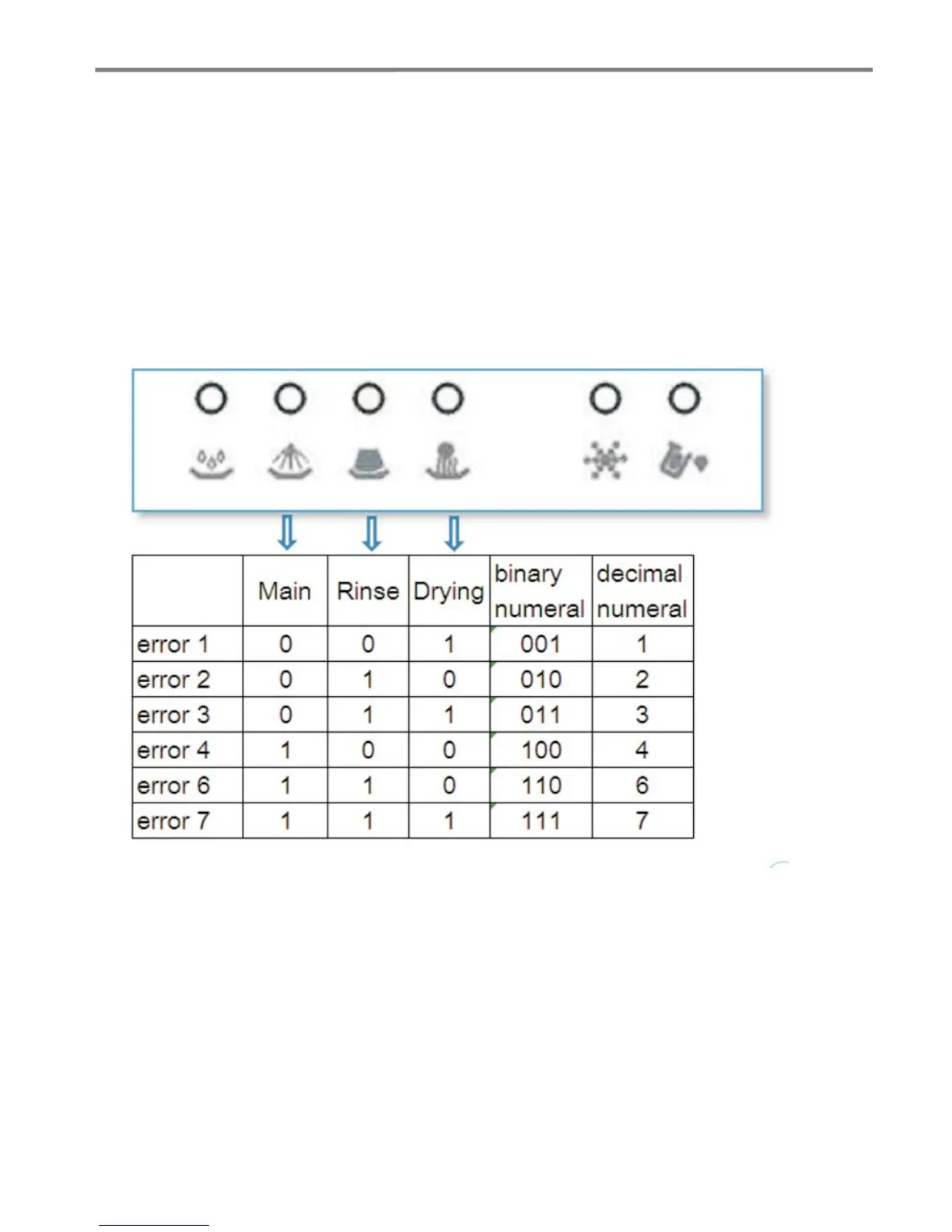 seconds and the Main, Rinse and Drying indicators would flash simultaneously. Other