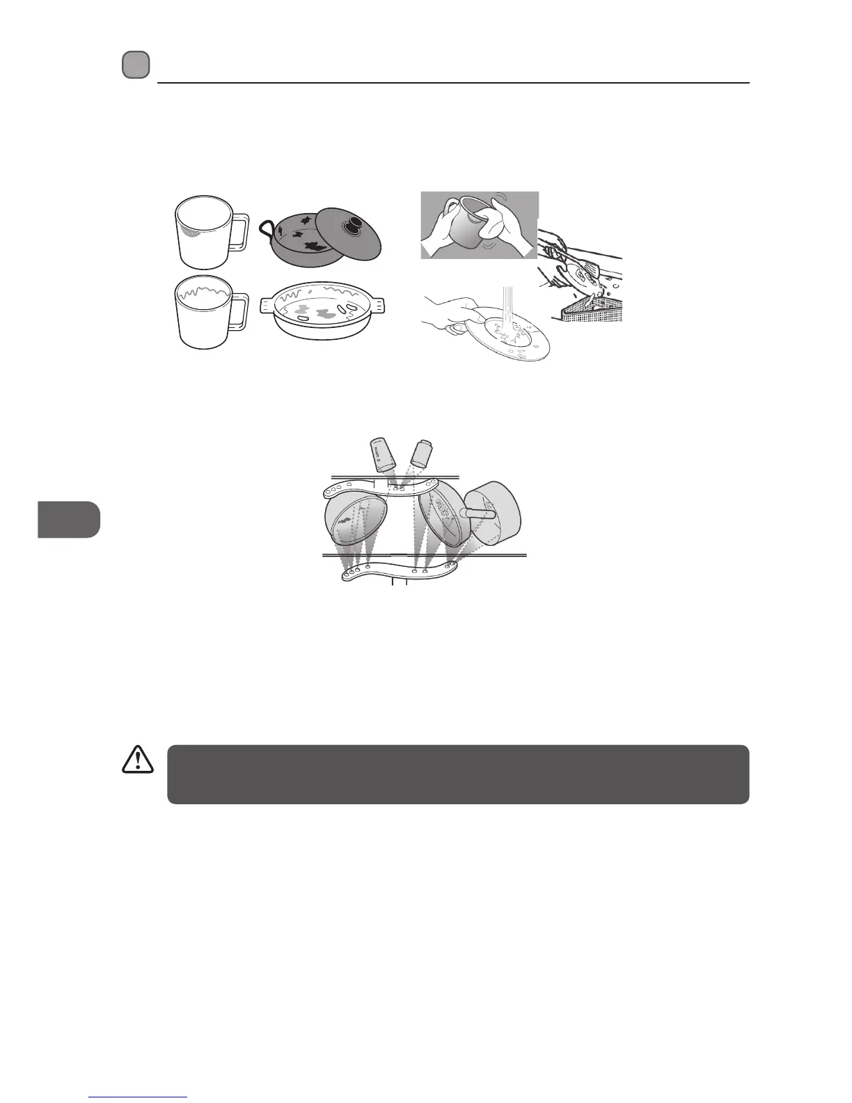 • Aseta ruokailuvälineet ja talousastiat niin, että vesi pääsee niihin kaikilta puolilta.