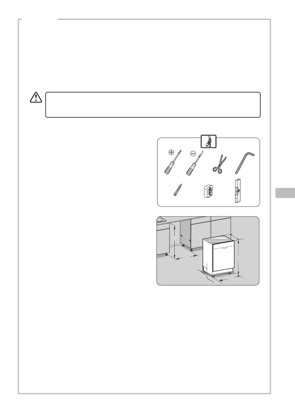 suositeltavaa, että kaksi henkilö käsittelee astianpesukonetta asennuksen aikana.