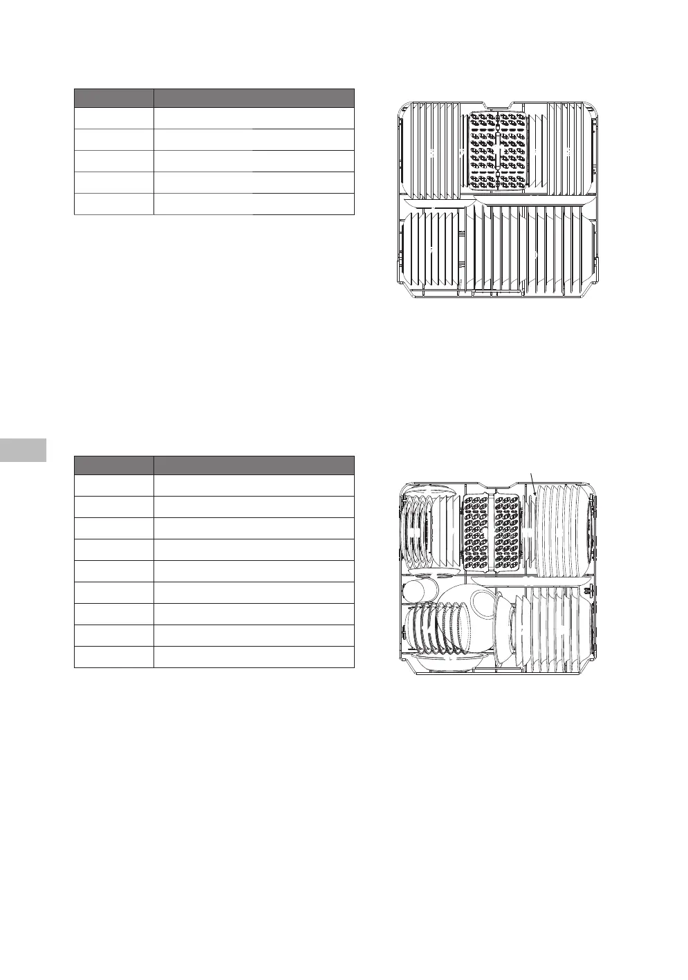 Katso seuraavasta luettelosta ja kuvasta astioiden optimaalinen sijoittaminen alakoriin.