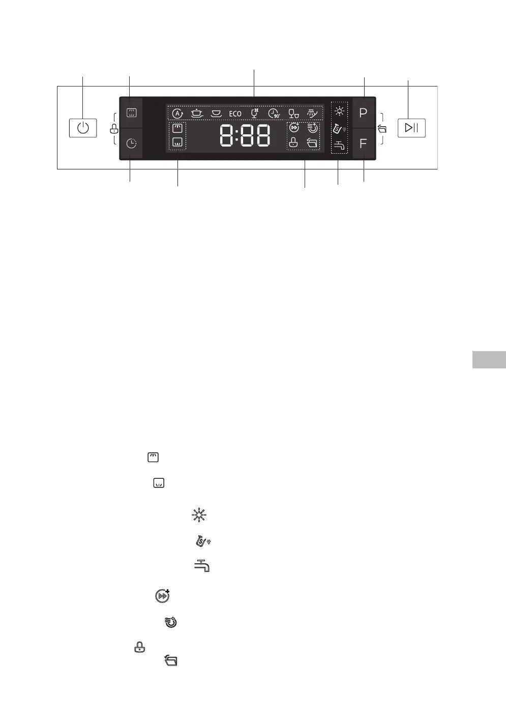 • Tryk gentagne gange, for at vælge den øvre eller nedre kurv til vask.