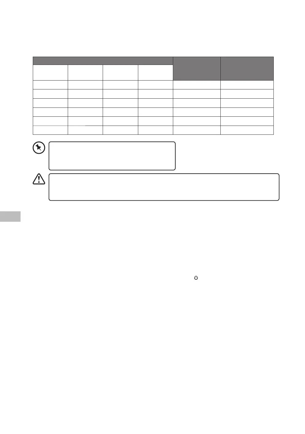 Det anbefales, at der udføres justering i henhold til følgende skema.