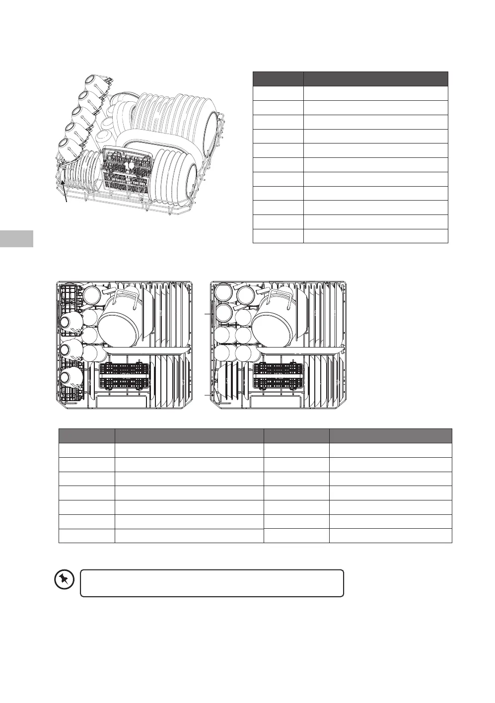 For optimum placement of crockery in the dishwasher basket, please refer to the following list and image.