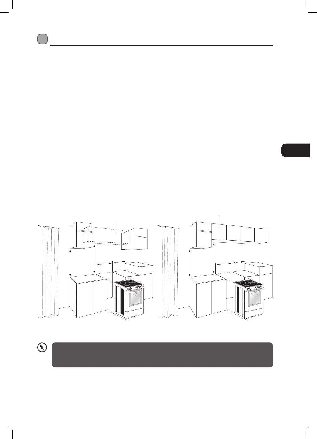 • Møbelveggene ved siden av komfyren må være laget av varmesikre materialer (undersøk med