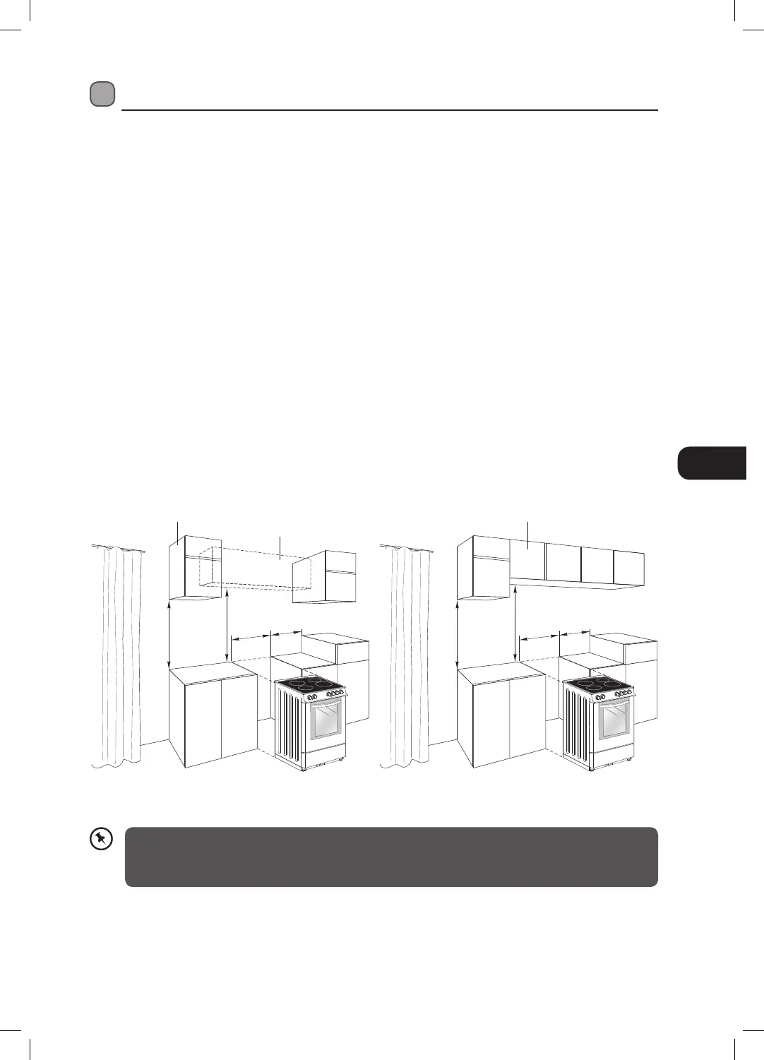 • On olennaista, että liesi sijoitetaan esitetyllä tavalla tai vapaasti seisovana ottaen huomioon etäisyydet