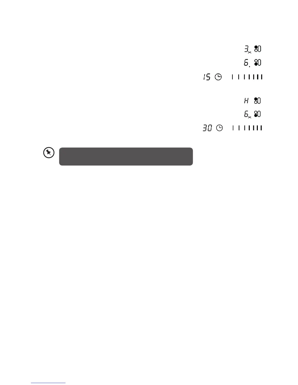 decimal dot on the relevant cooking zones will be on. The display