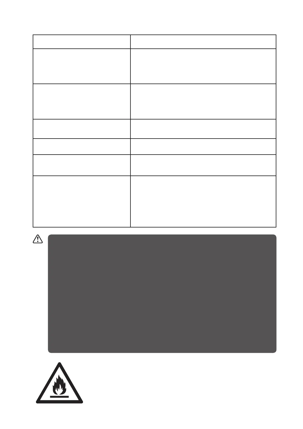 ADVARSEL: Risiko for brand/brandfarlige materialer!