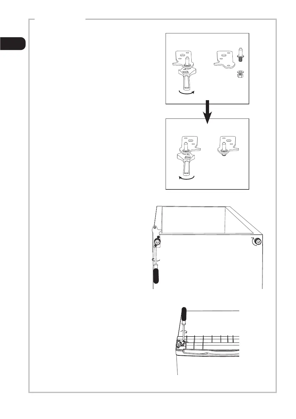 hengseltappen, snu braketten rundt og