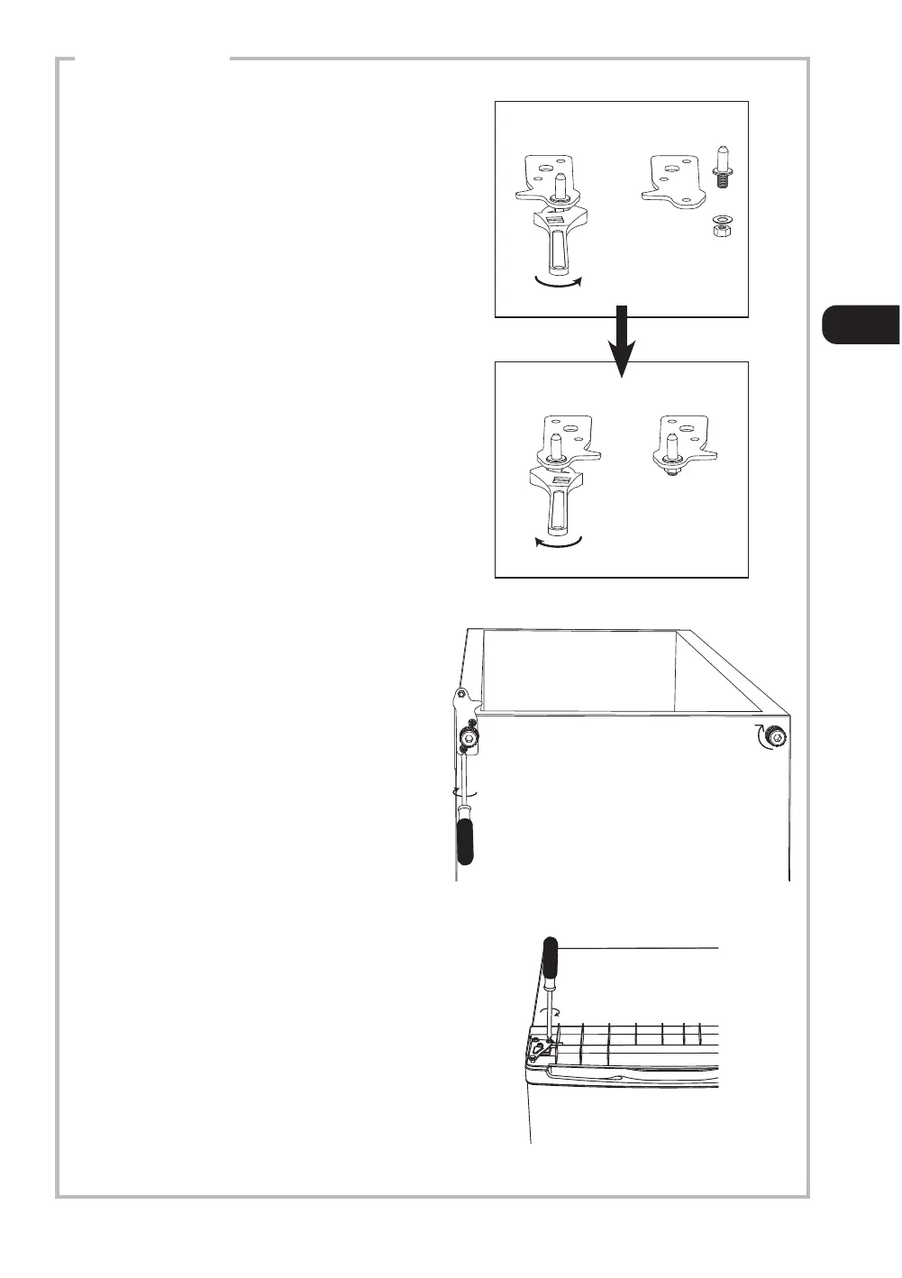 før du spænder det øverste hængsel fast.