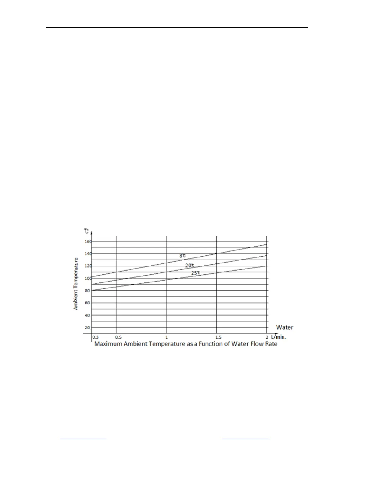 Water flow rate of 1 to 2 L/min (0.035 to 0.071 ft