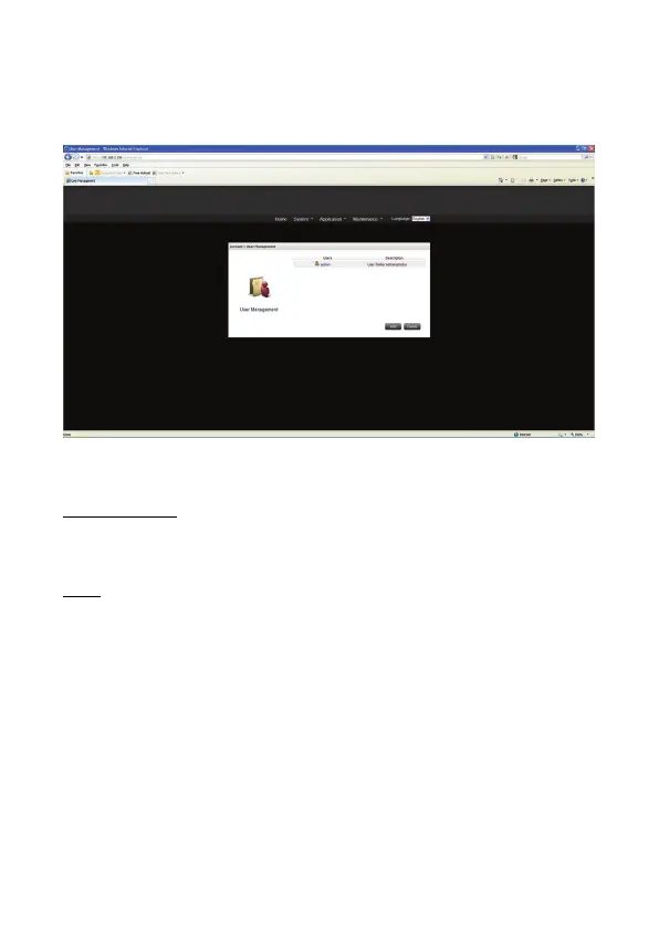 Administrator can add new users in this setting page. “admin” is a default user and he has