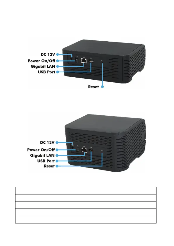 Reset Button: Press this button for at least 5 seconds to reset NAS to its default settings.