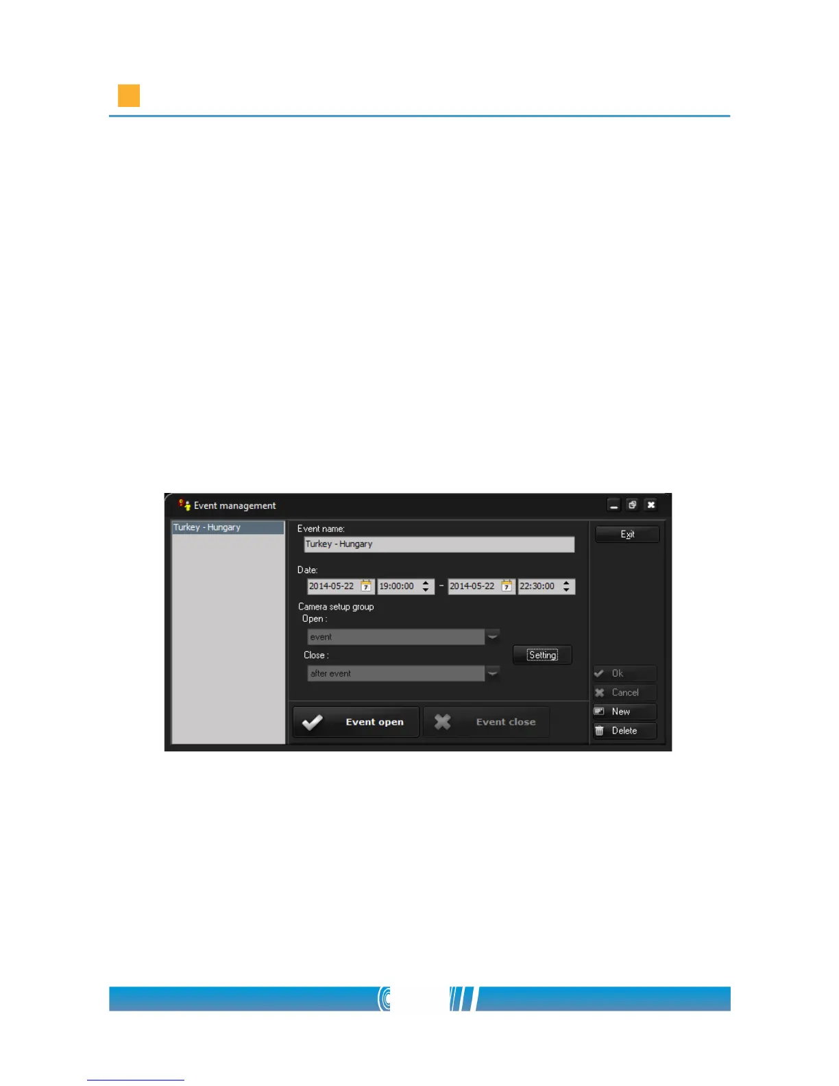 • Select the camera setups for the event (Open) and for after the event