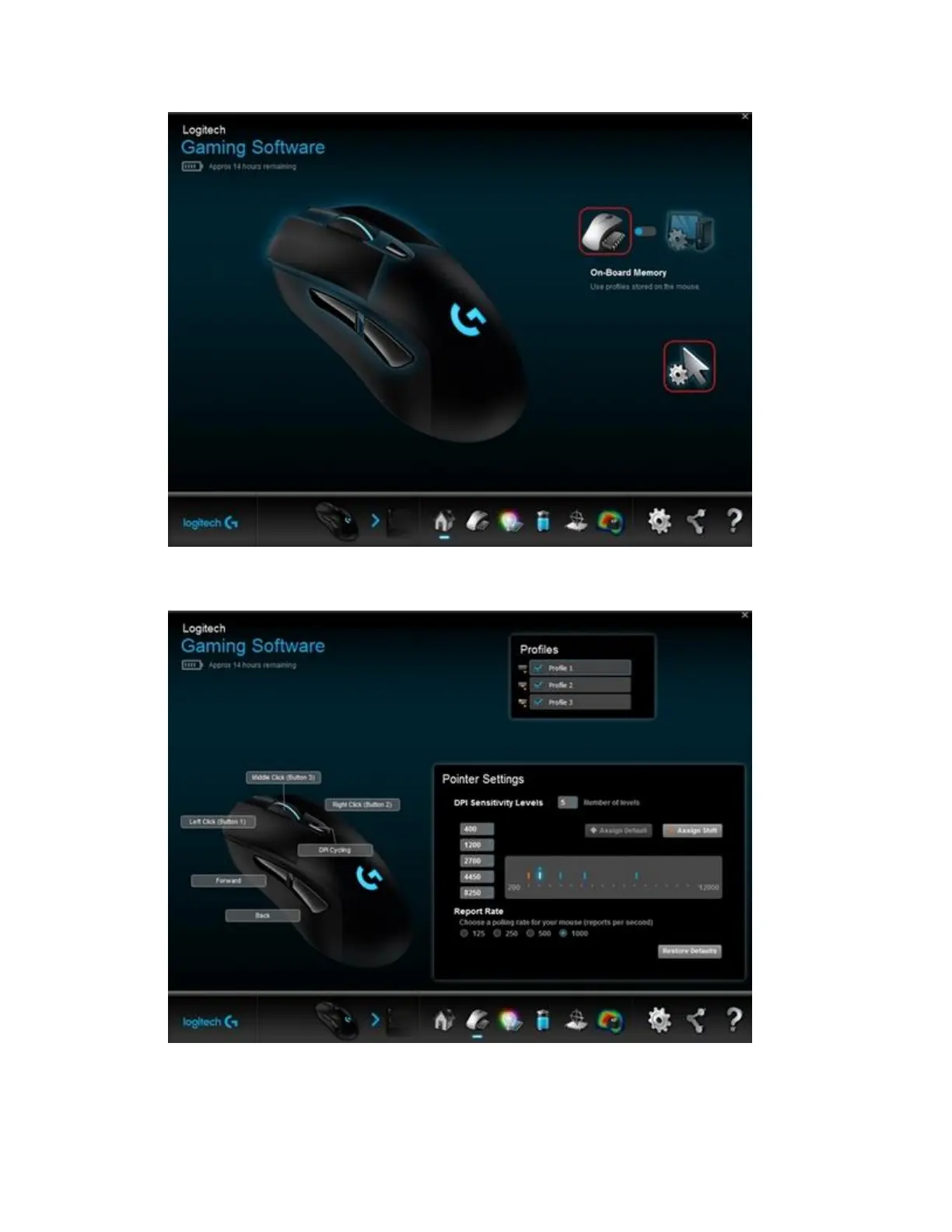 Logitech G G403 Wireless - Pointer Settings in On-Board Mode