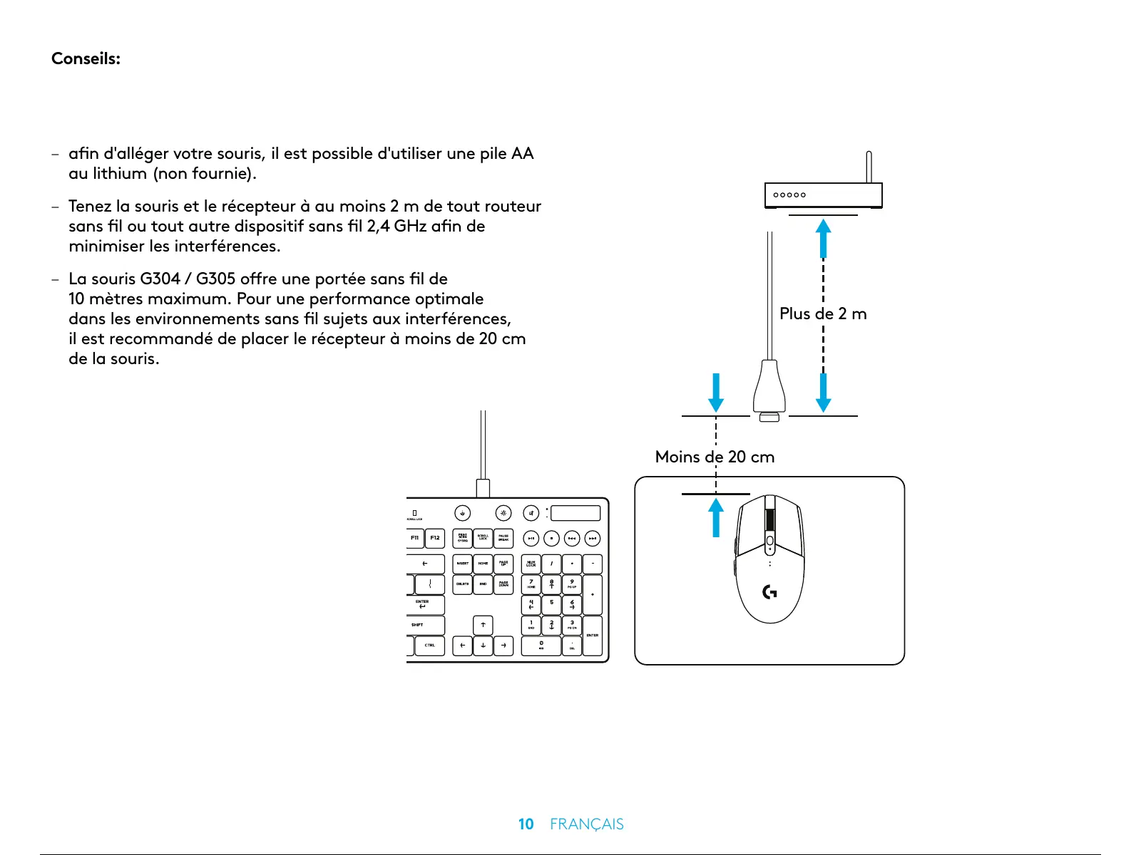 – La souris G304 / G305 ore une portée sans l de
