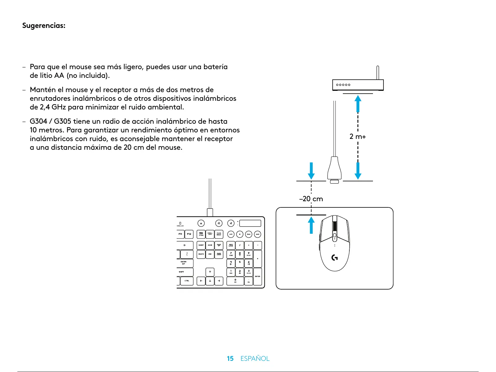 – G304 / G305 tiene un radio de acción inalámbrico de hasta