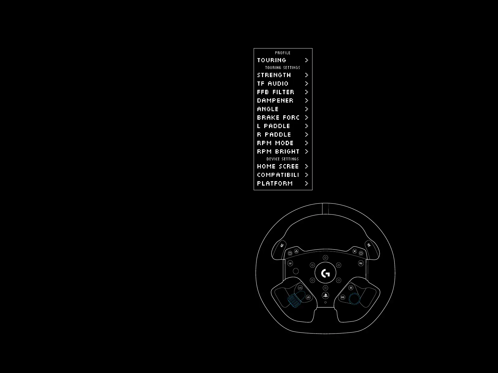 Appuyez sur le bouton Paramètres de la base du volant pour accéder
