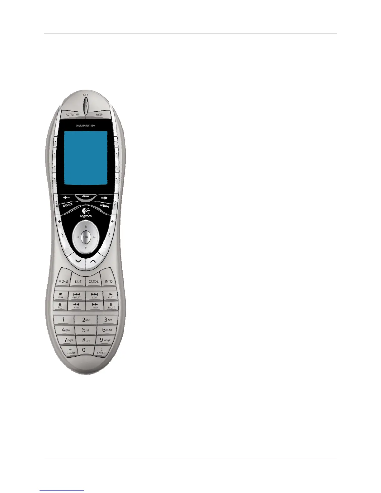 GLOW: Turns on and of the backlight on the Harmony remote.