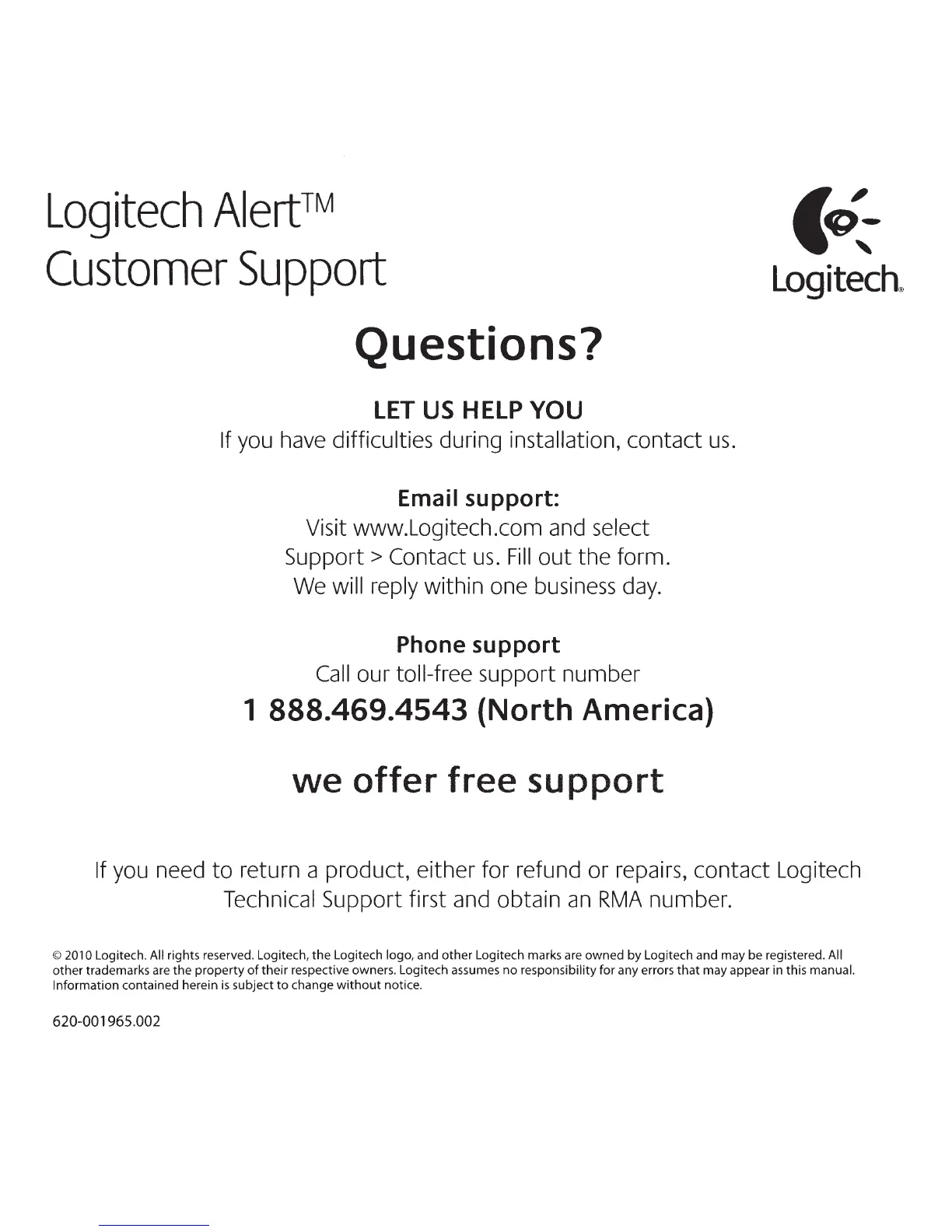 © 2010 Logitech. All rights reserved. Logitech, the Logitech logo, and other Logitech marks are owned by Logitech and may be registered. All