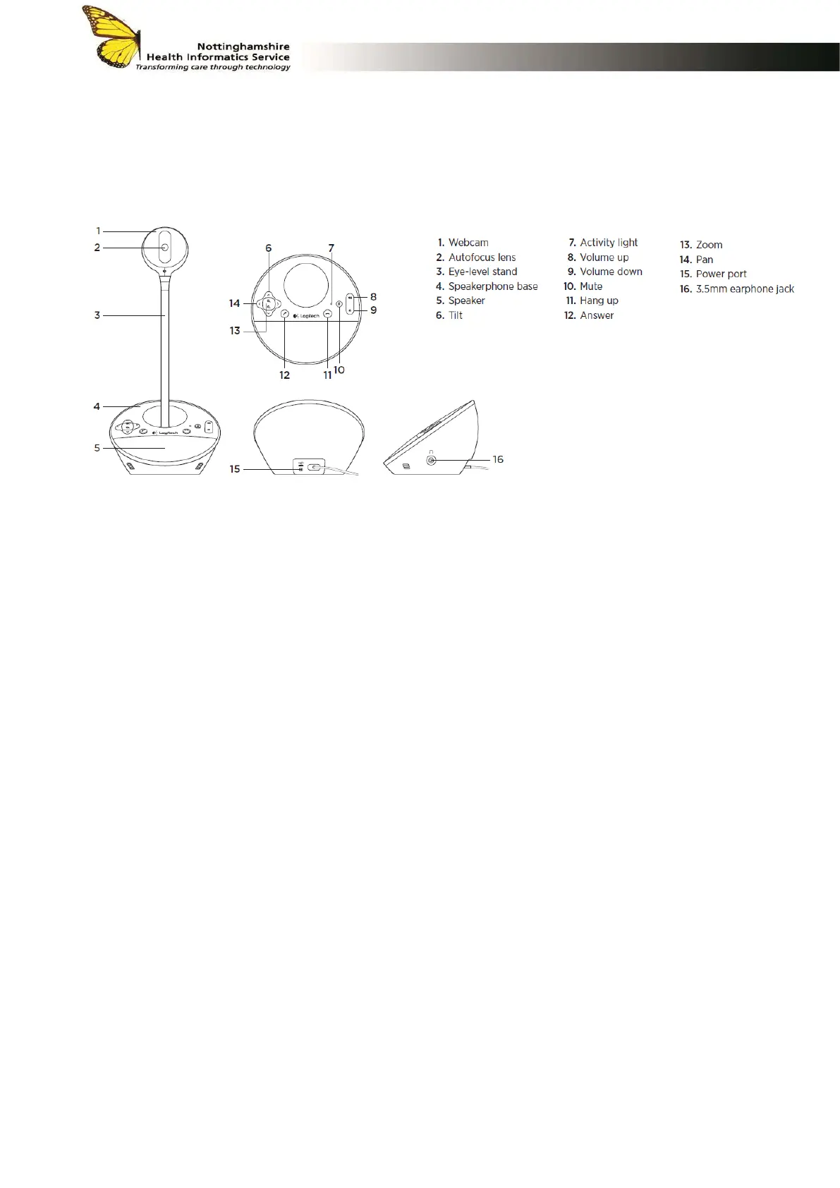 Use the Tilt, Zoom & Pan controls (6, 13 & 14 above) to adjust the webcam image. IMPORTANT: Do not rotate/tilt the
