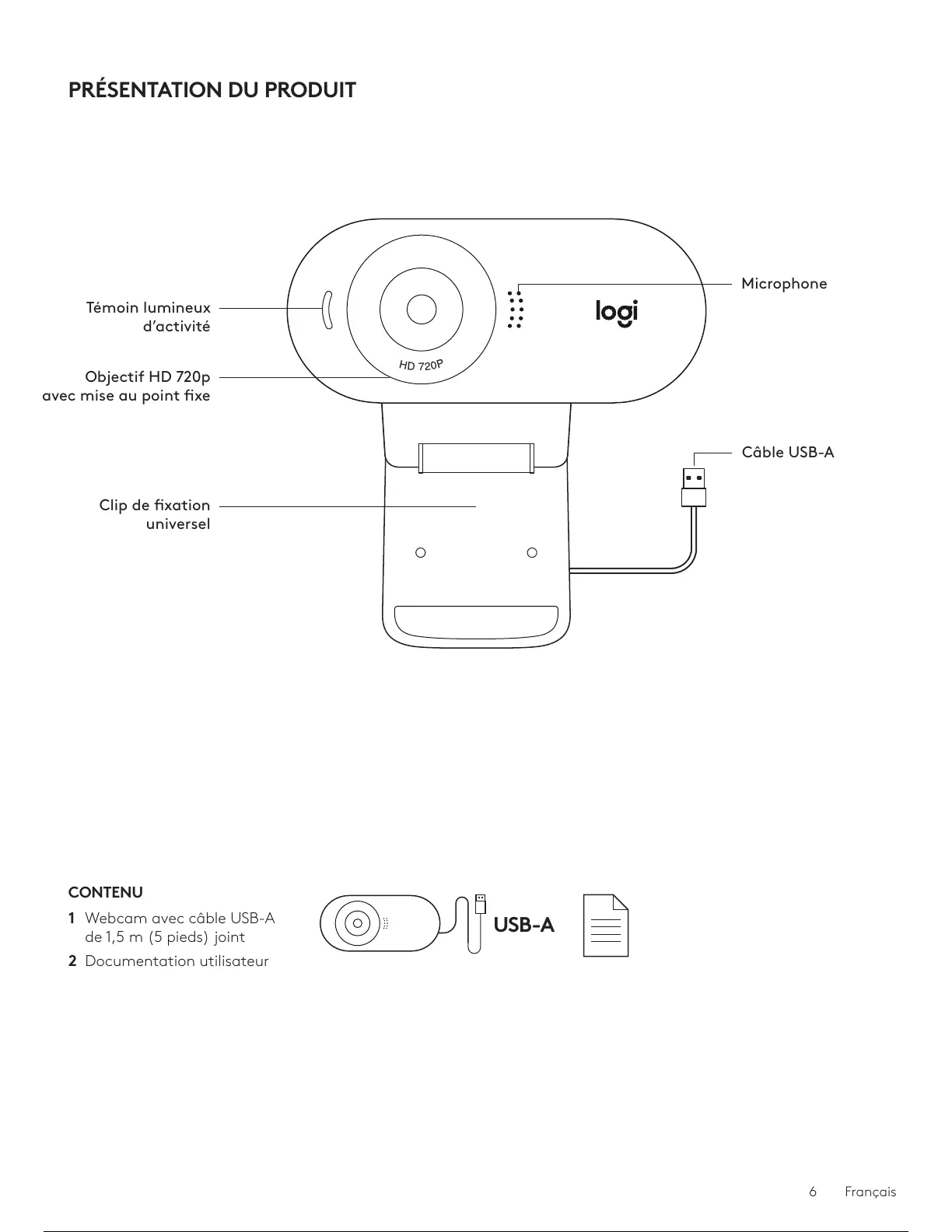 1 Webcam avec câble USB-A