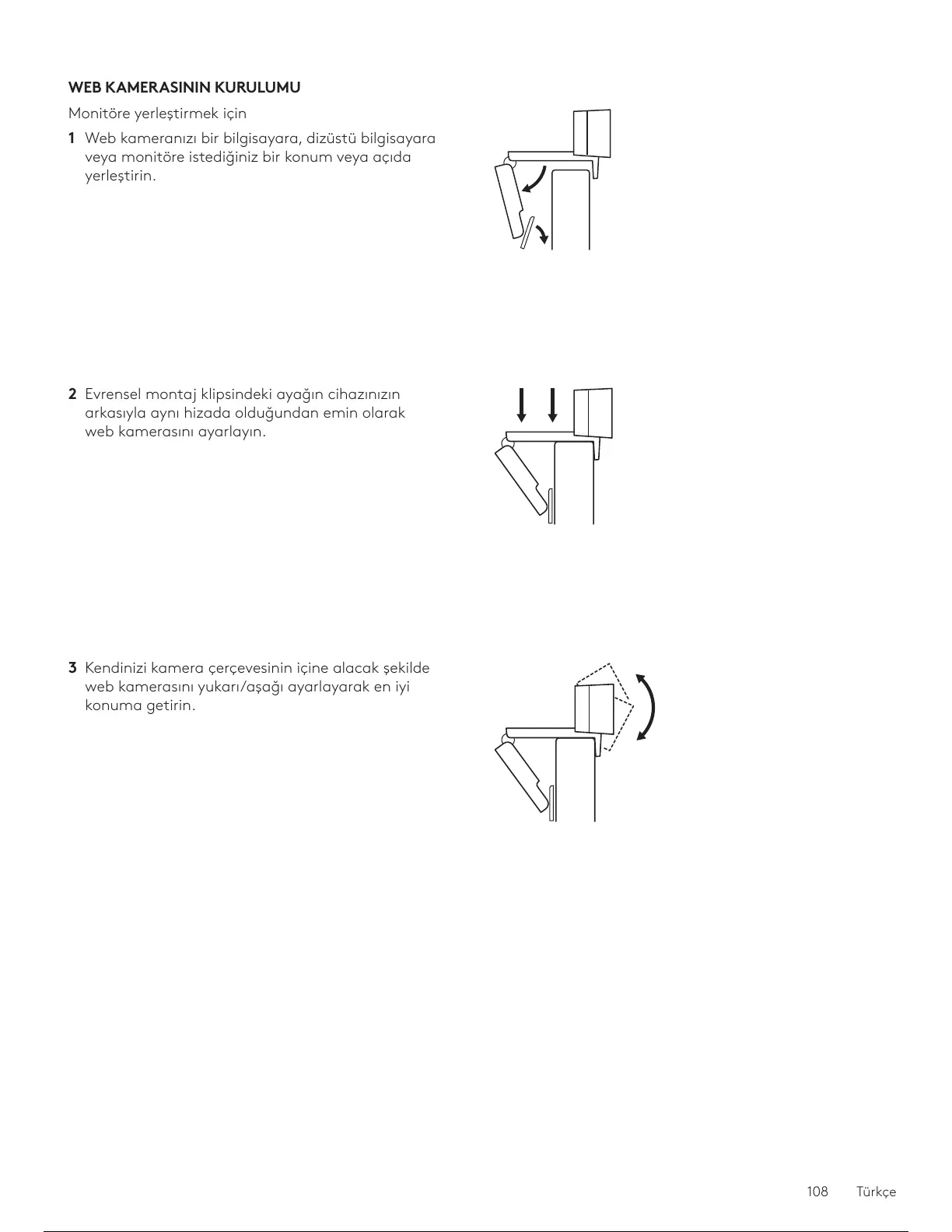 webkamerasını yukarı/aşağı ayarlayarak en y