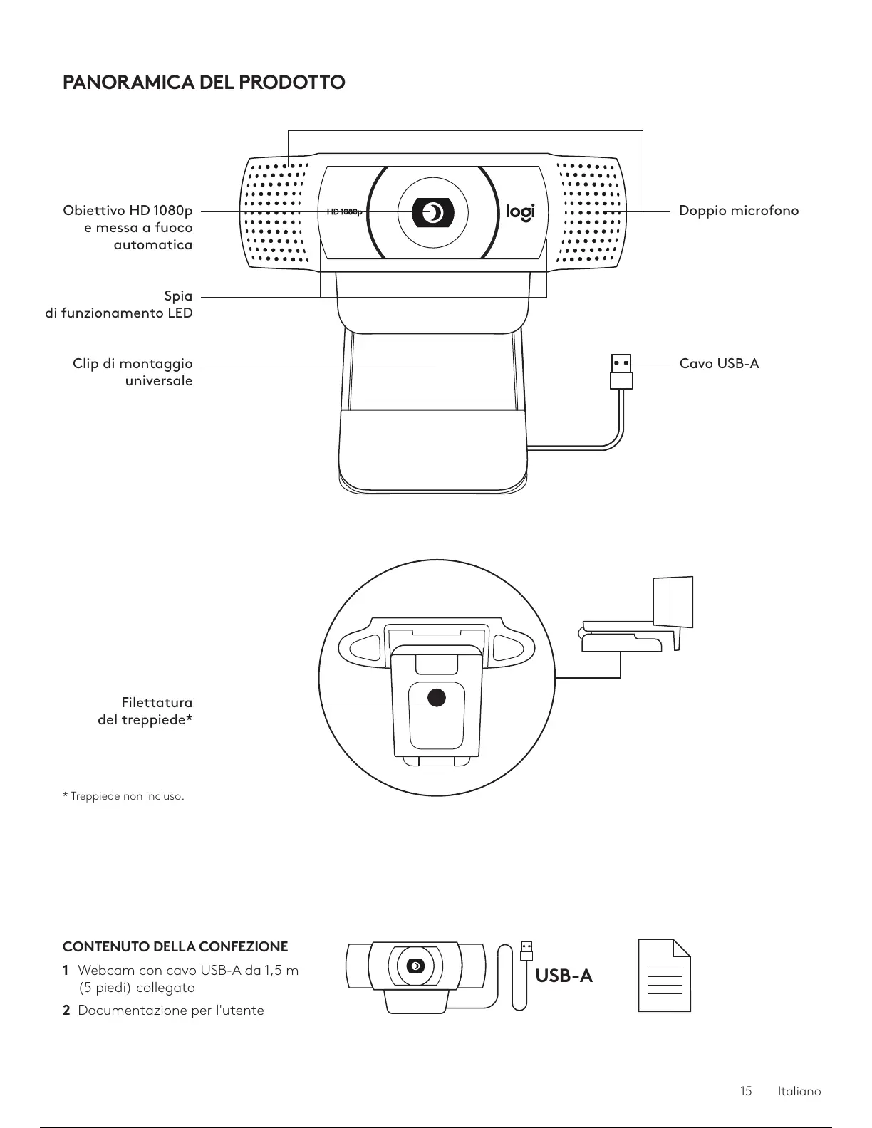 1 Webcam con cavo USB-A da 1,5 m