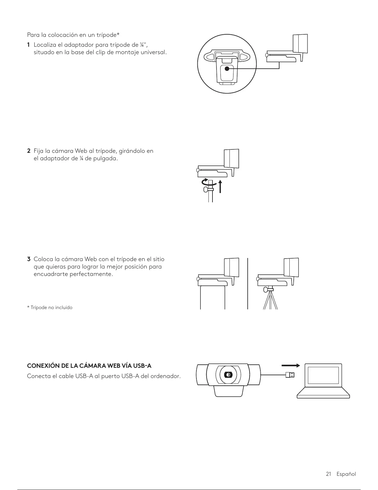 2 Fija la cámara Web al trípode, girándolo en