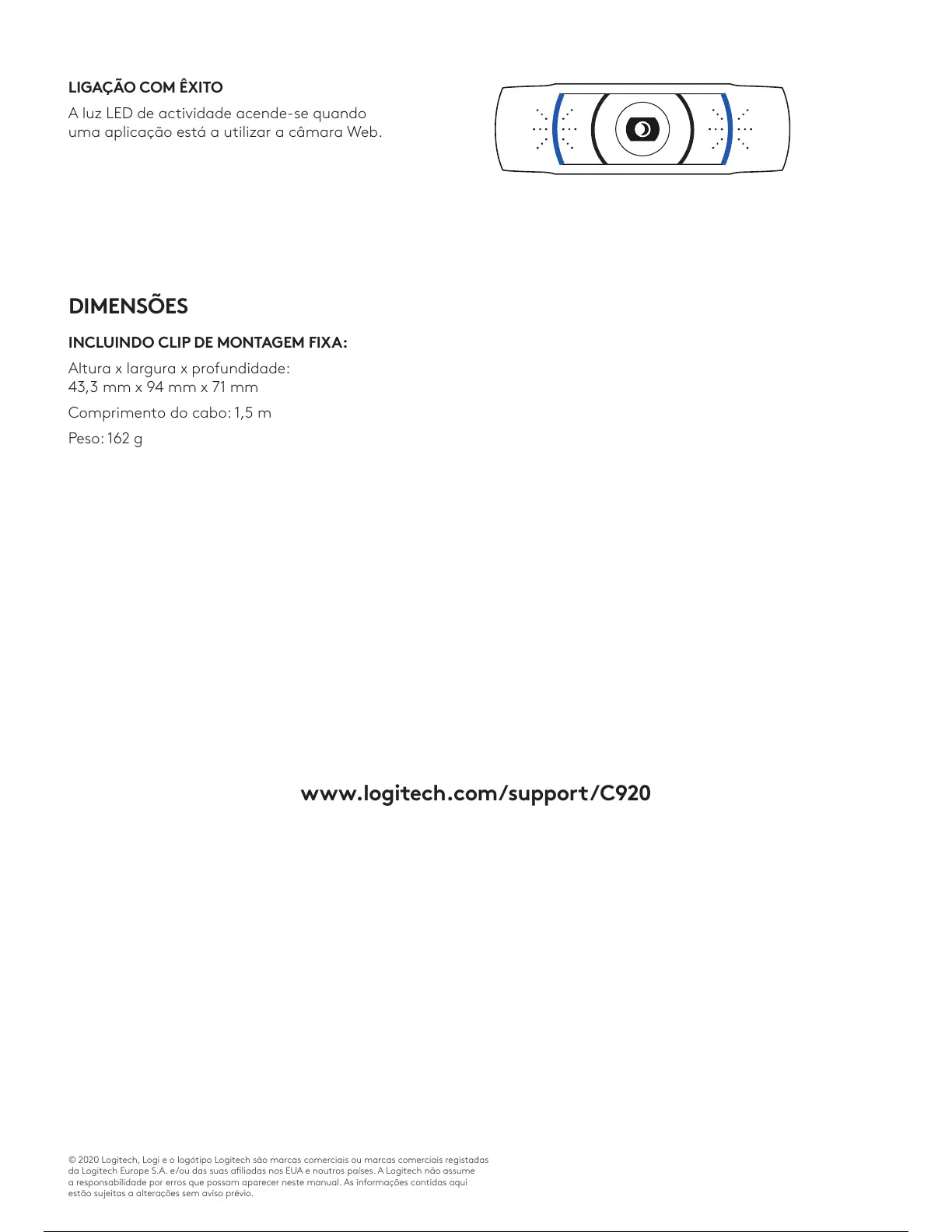 © 2020 Logitech, Logi e o logótipo Logitech são marcas comerciais ou marcas comerciais registadas