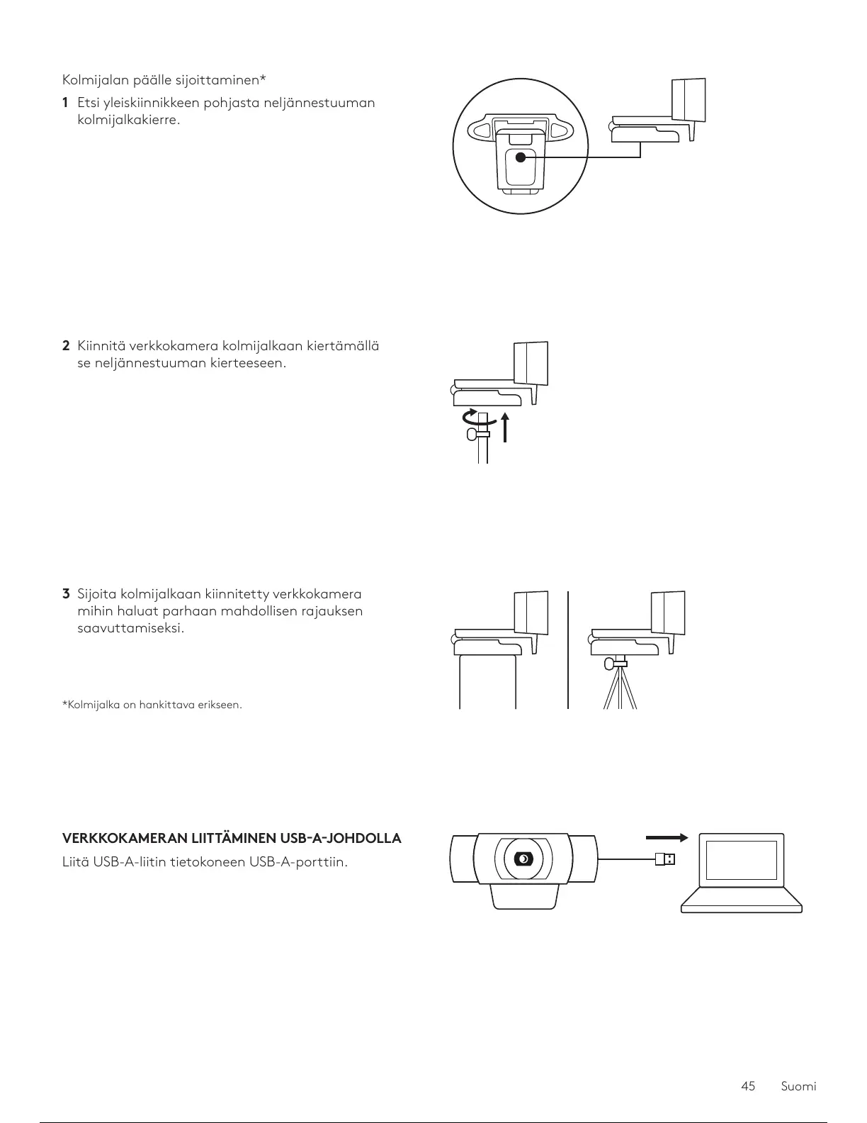 2 Kiinnitä verkkokamera kolmijalkaan kiertämällä