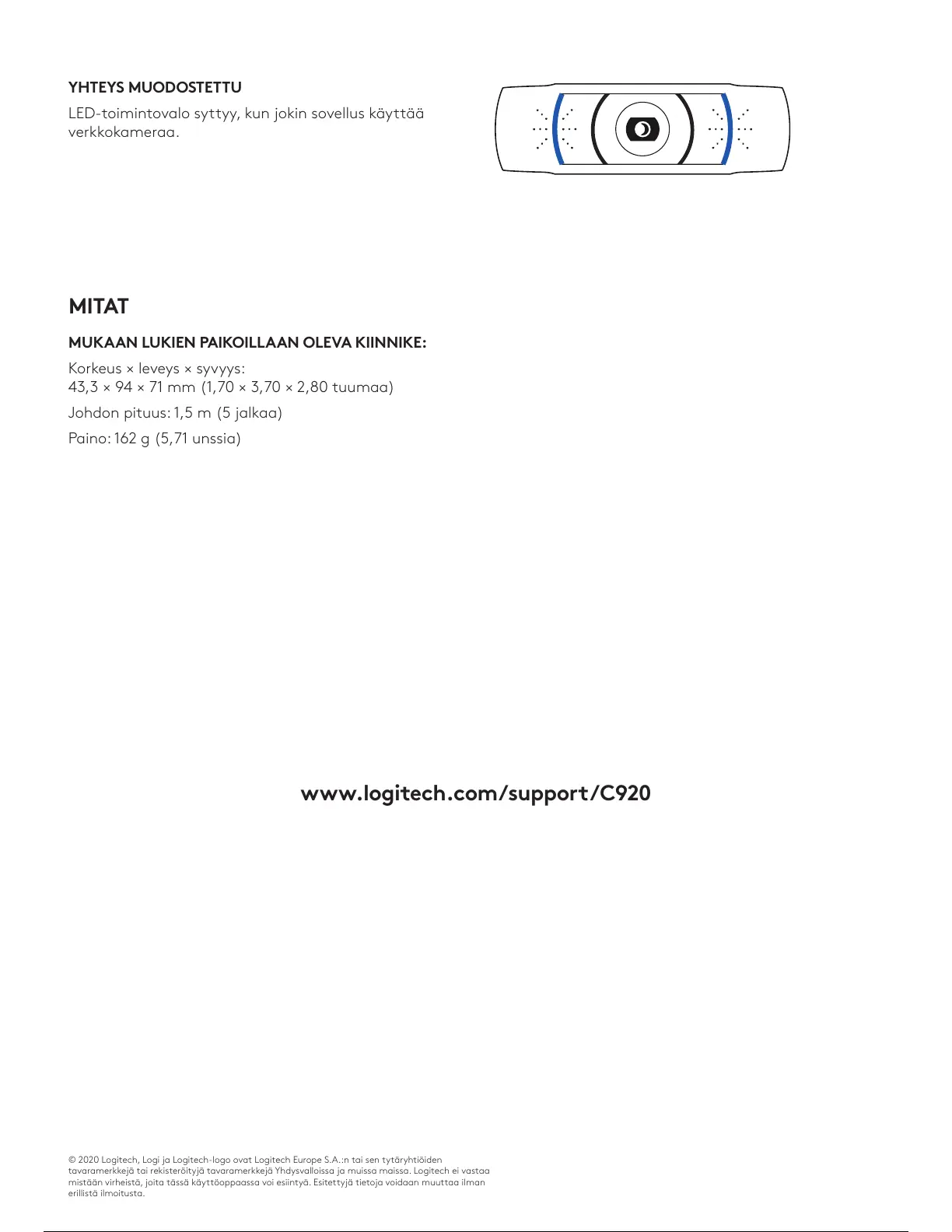 © 2020 Logitech, Logi ja Logitech-logo ovat Logitech Europe S.A.:n tai sen tytäryhtiöiden