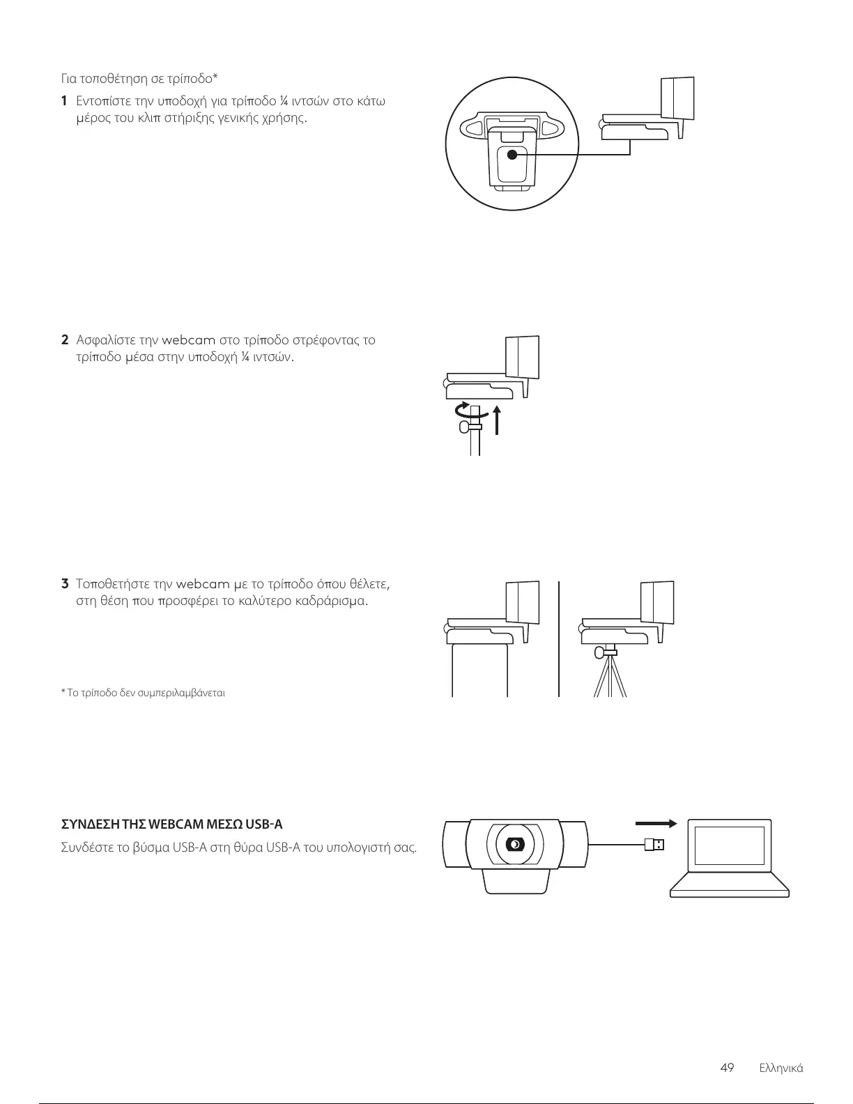 3 Τοποθετήστε την webcam ε το τρίποδο όπου θέλετε,
