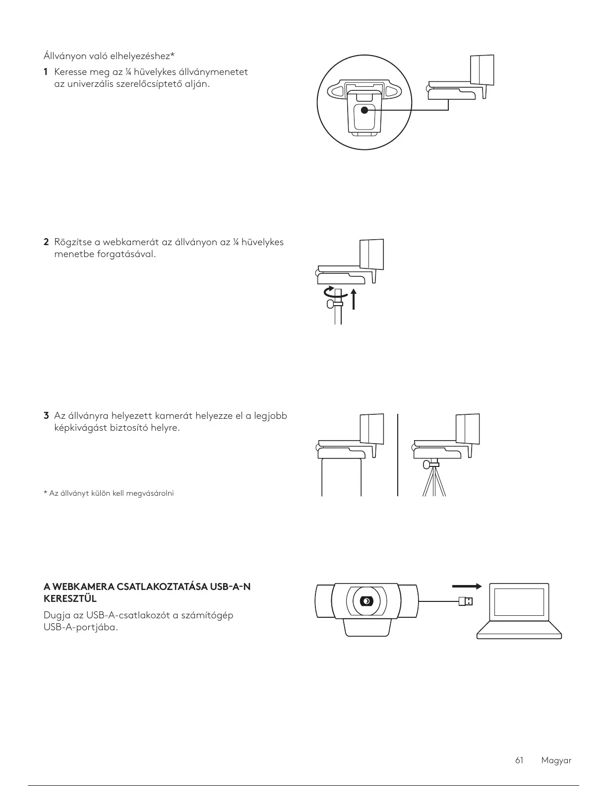 2 Rögzítse a webkamerát az állványon az ¼ hüvelykes