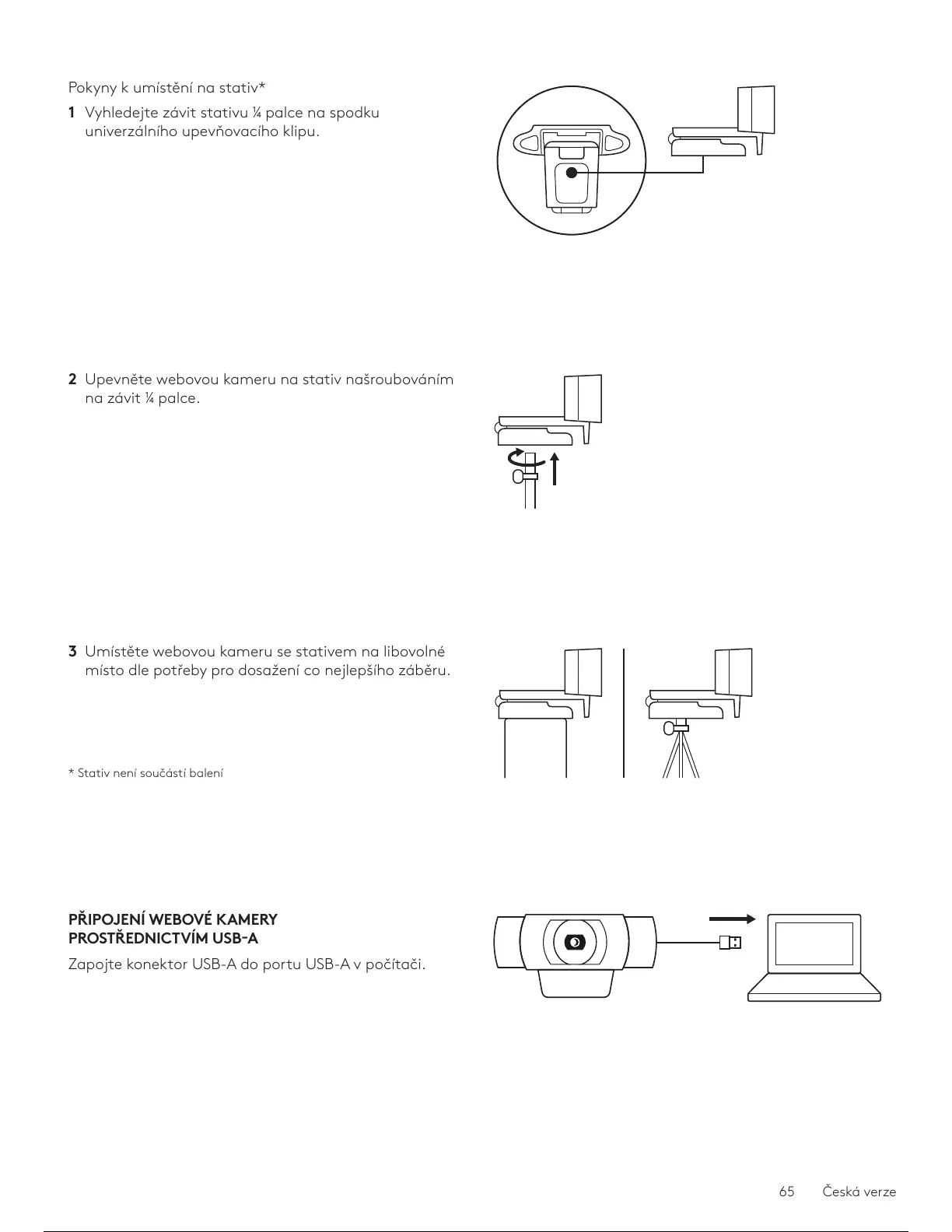 2 Upevněte webovou kameru na stativ našroubováním