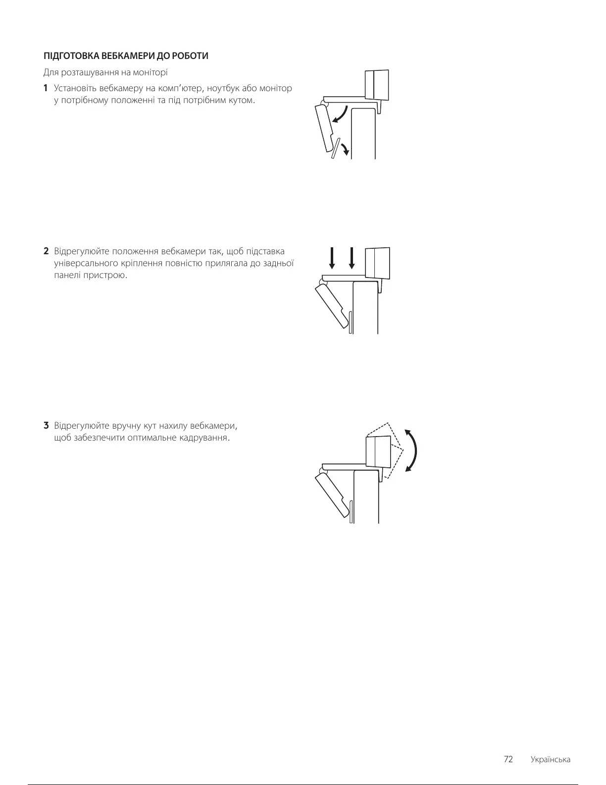 3 Відрегулюйте вручну кут нахилу вебкамери,