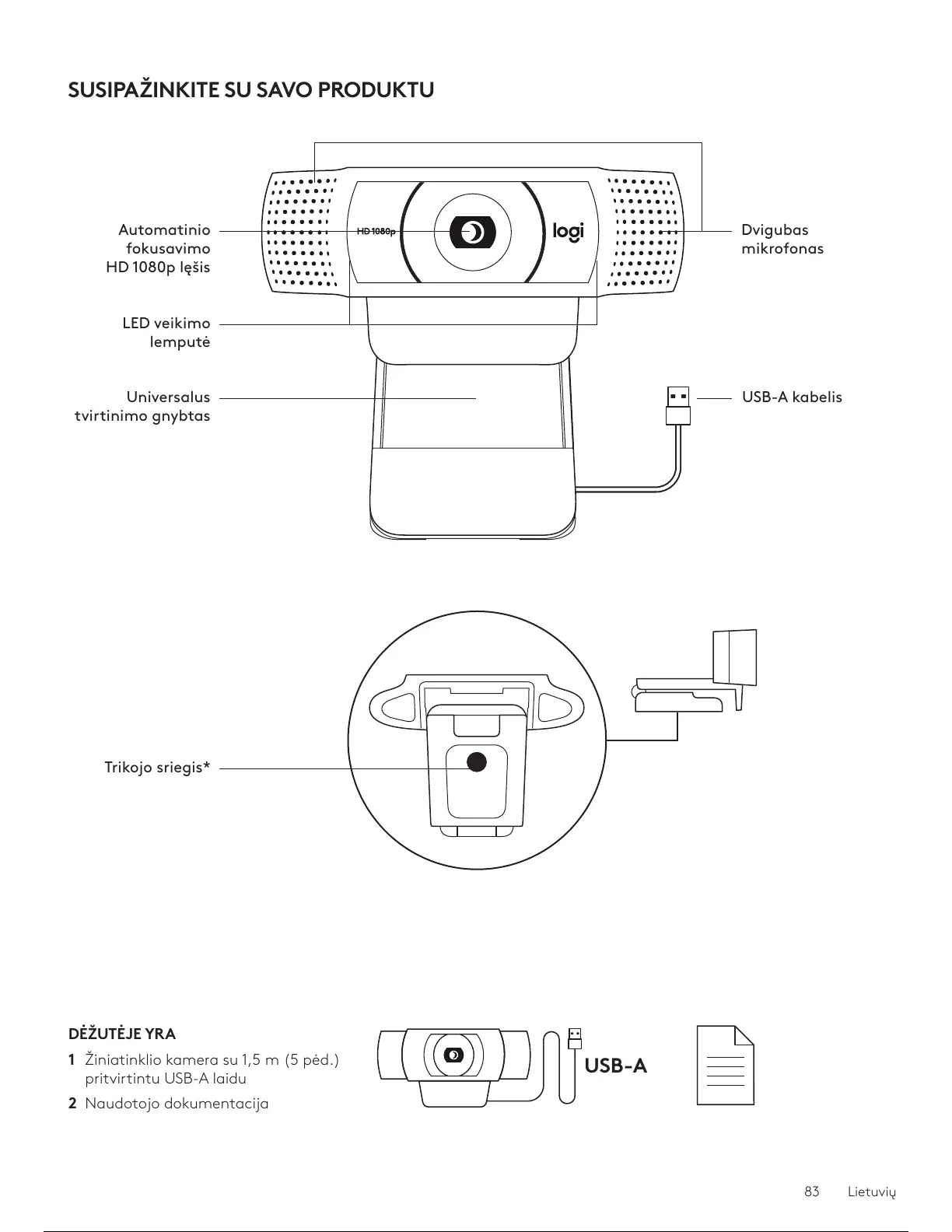 1 Žiniatinklio kamera su 1,5m (5pėd.)