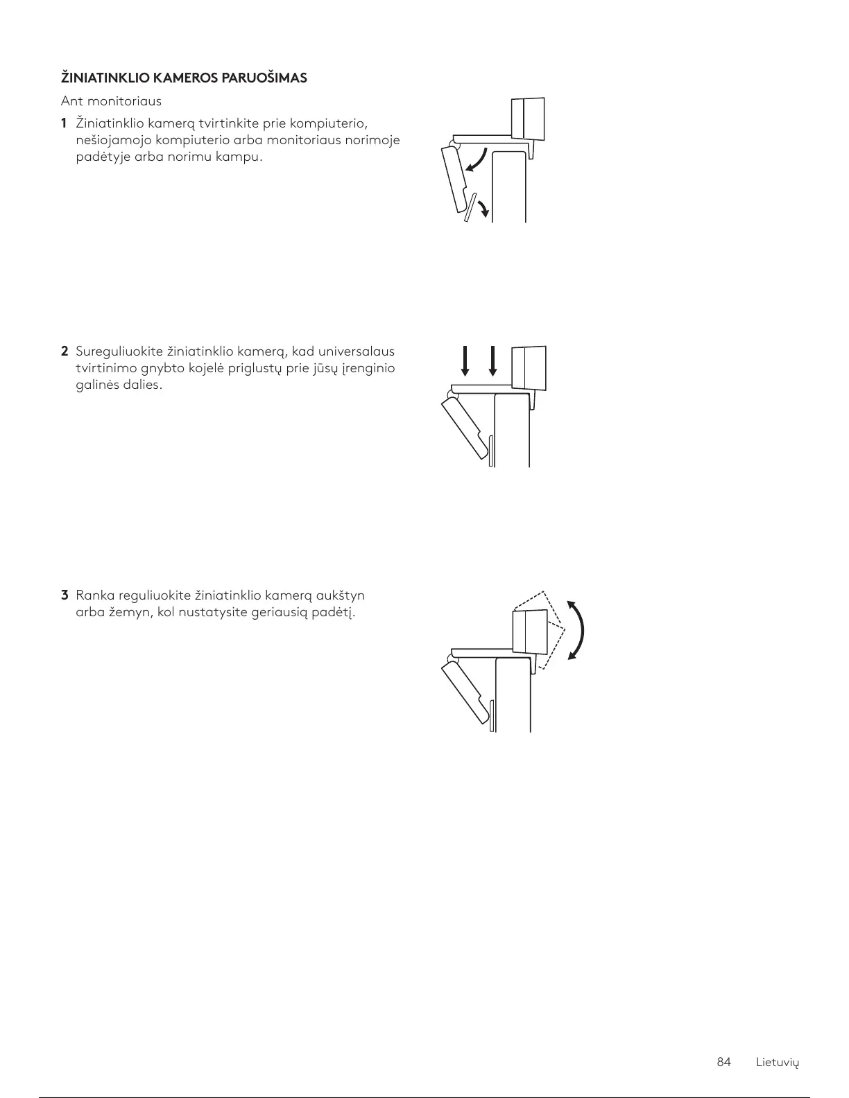 1 Žiniatinklio kamerą tvirtinkite prie kompiuterio,