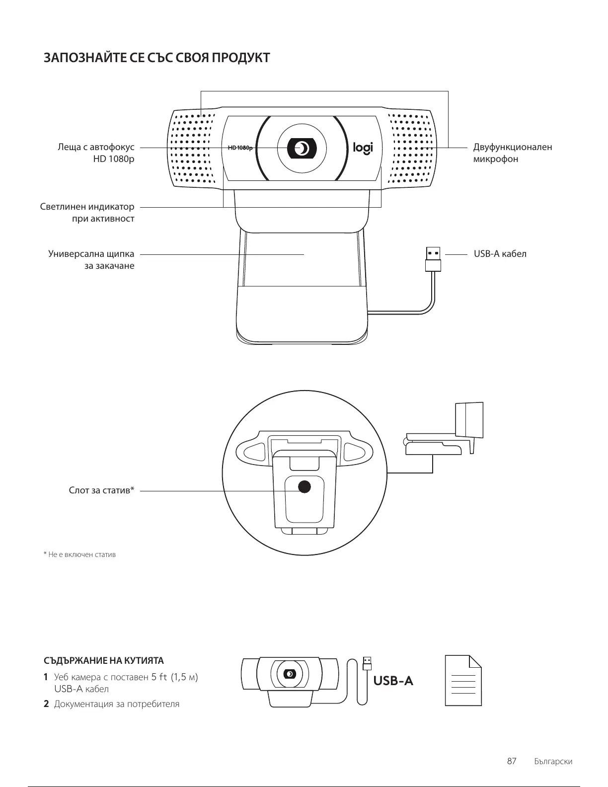 1 Уеб камера с поставен 5 ft (1,5 м)