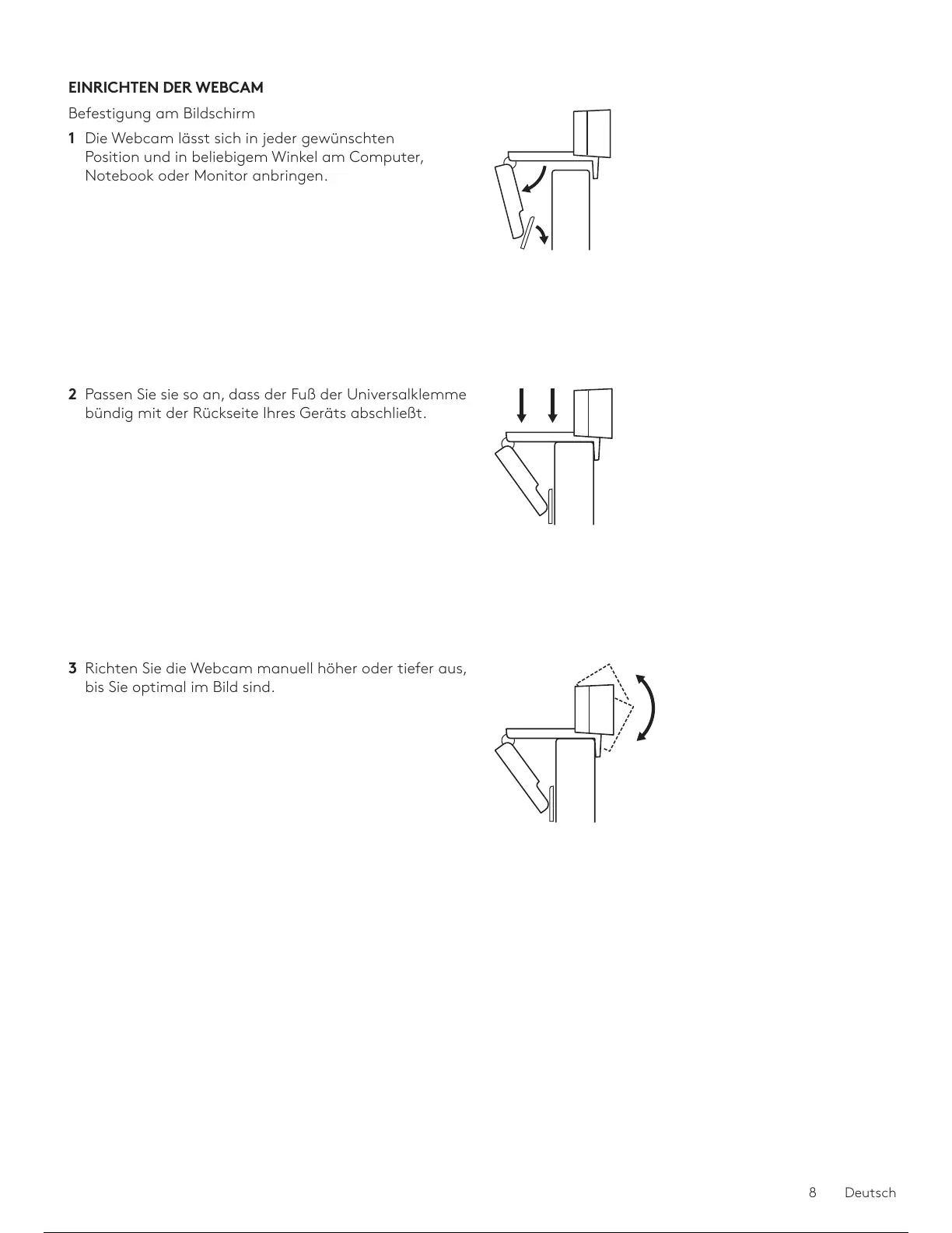 3 Richten Sie die Webcam manuell höher oder tiefer aus,