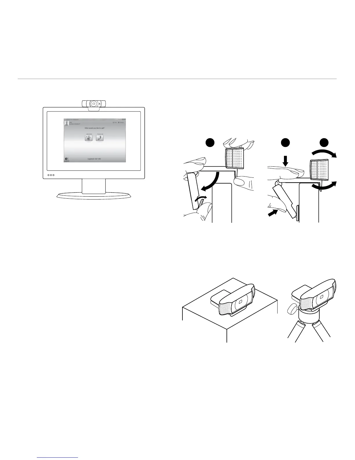 clip base with your other hand. Mount the webcam,