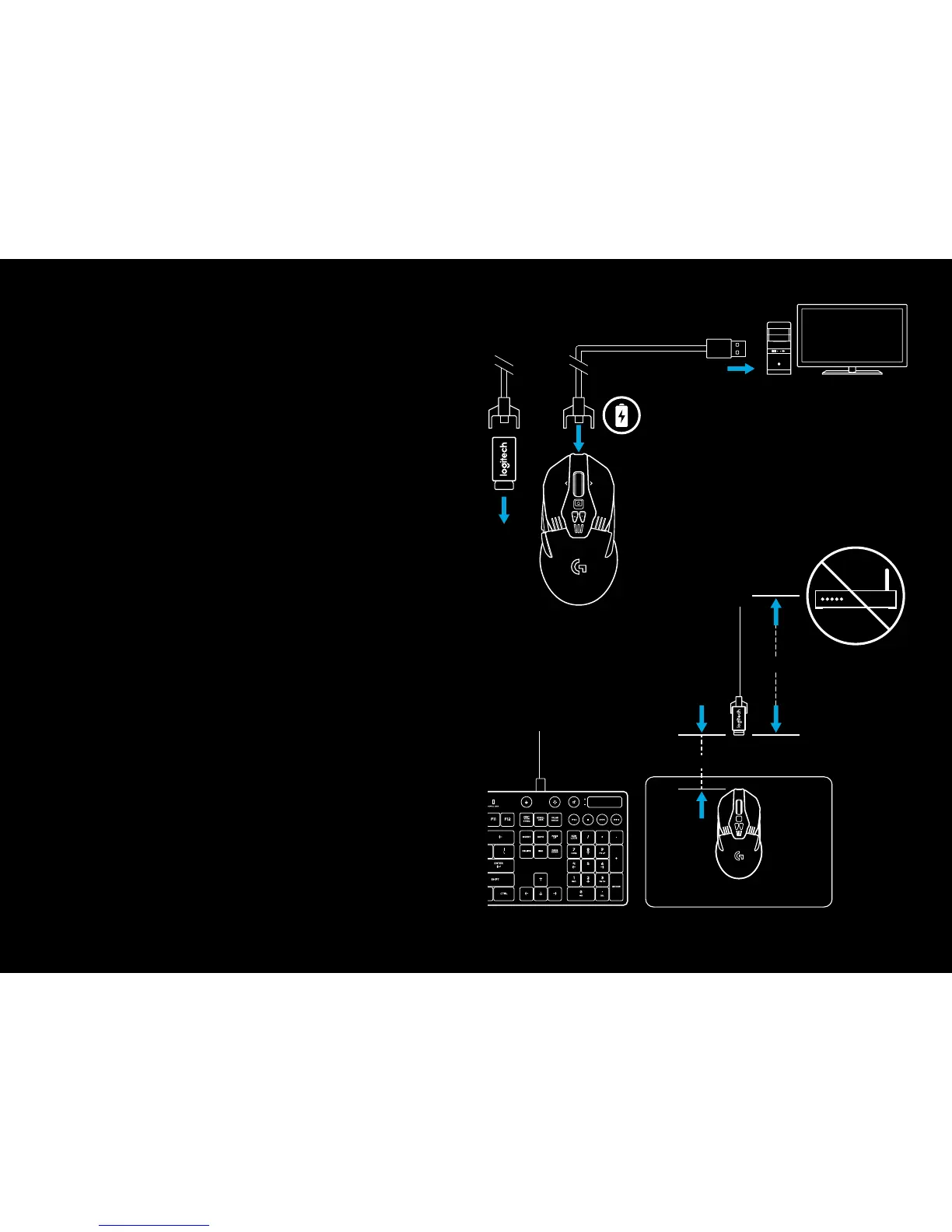 – Mantenha o mouse e o receptor a mais de 2 m de roteadores