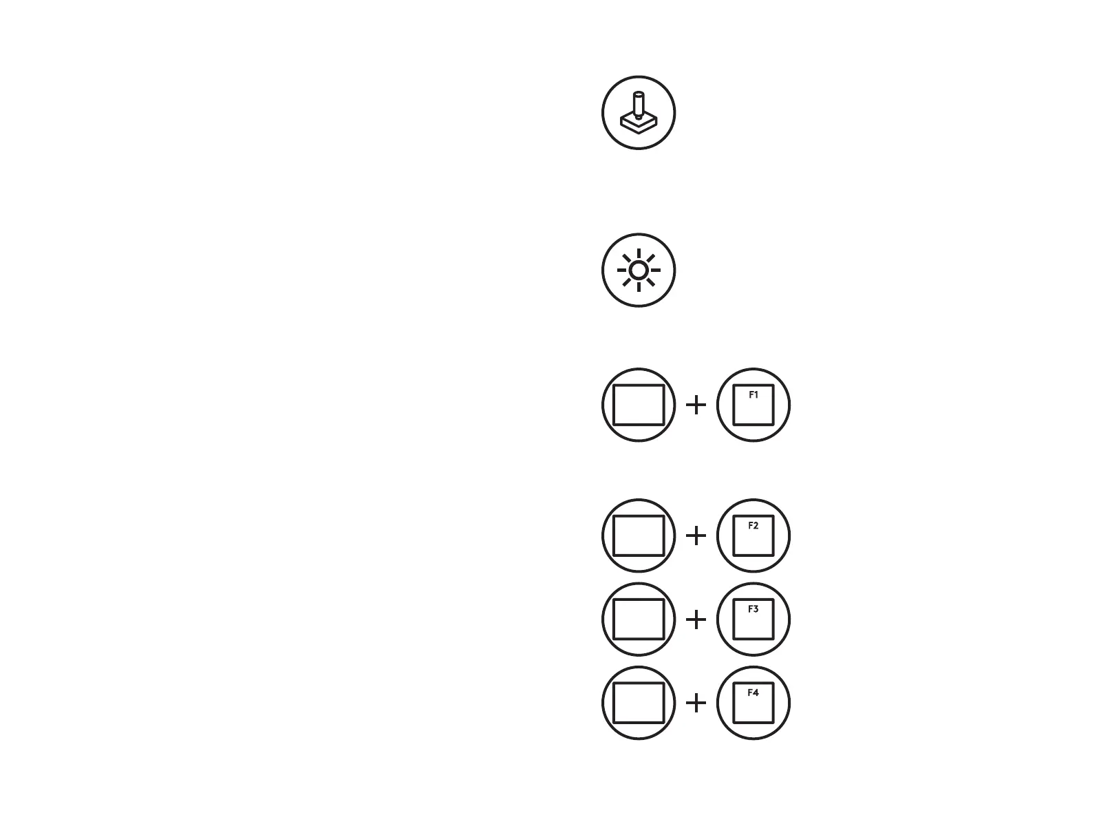 eFN+F2, F3 e F4 para acessá-los quando o teclado está no modo
