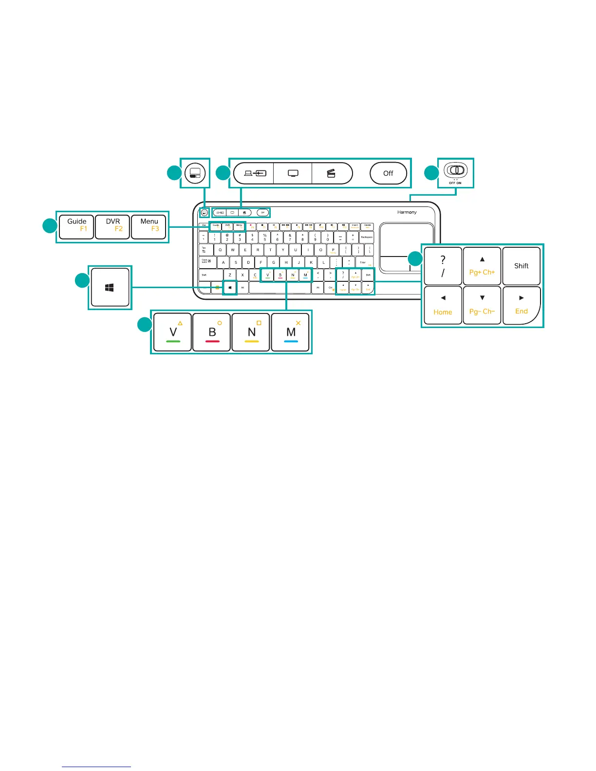 7. Computer Page Up/Down or set top box Channel Up/Down when used in combination