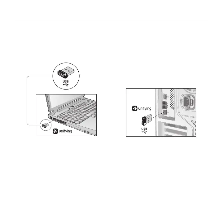 Inserta el receptor Unifying en un puerto USB de la computadora.