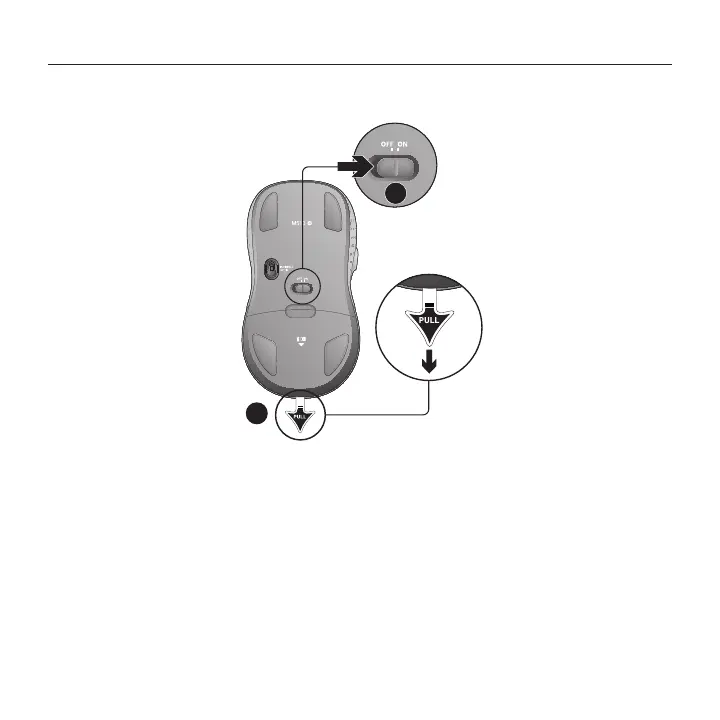 1. Puxe a lingueta para ativar as pilhas do mouse.