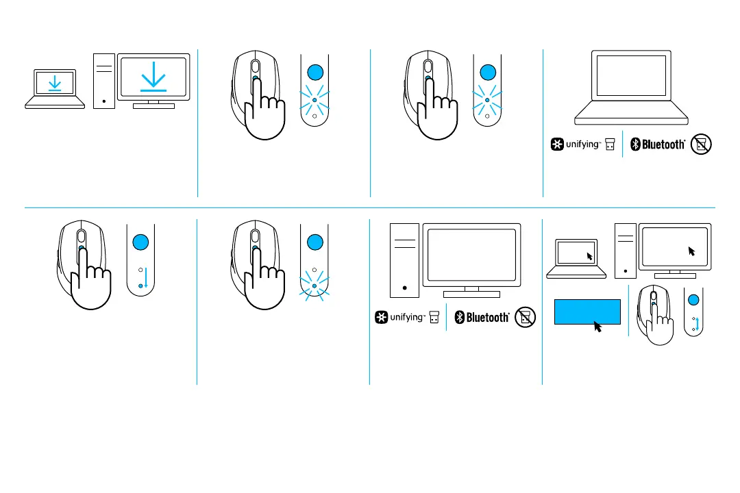 1 上下 Logitech Options 2 确保鼠标处于开启状态 3 长按易于按钮来进入配