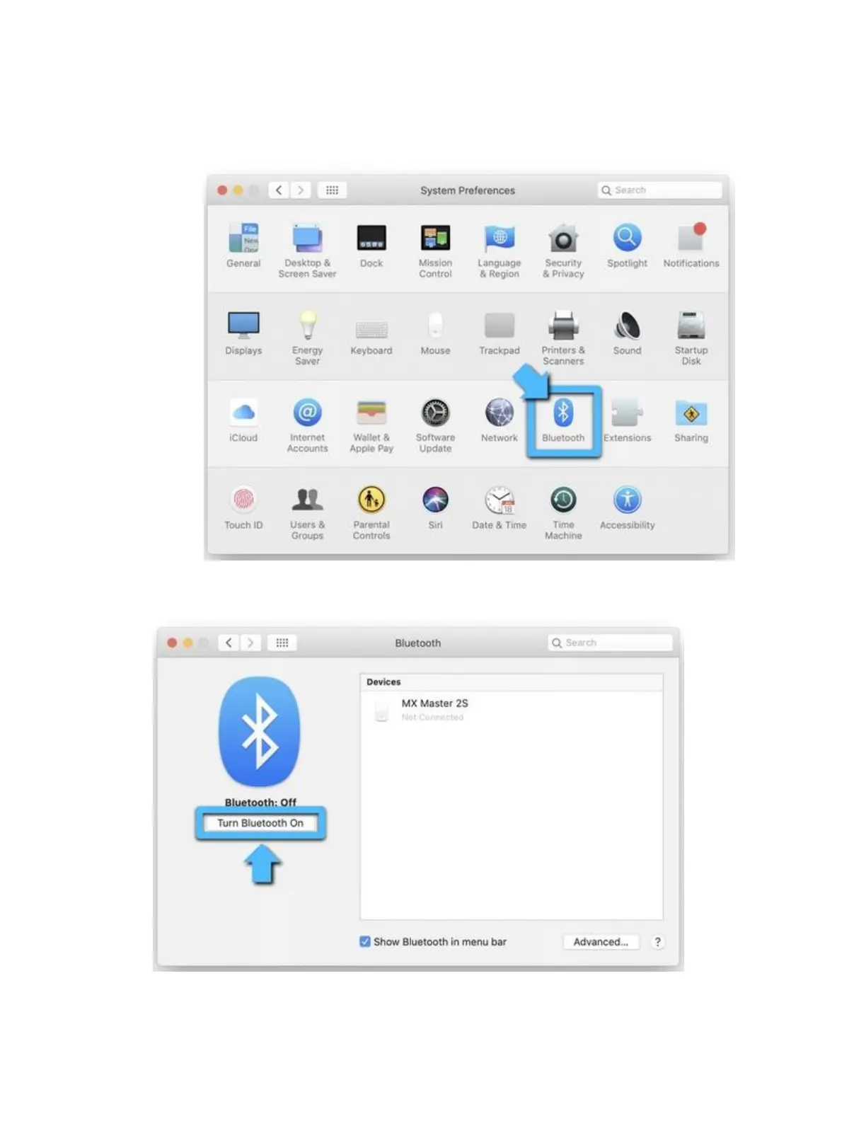 1. Navigate to the Bluetooth preference pane in System Preferences: